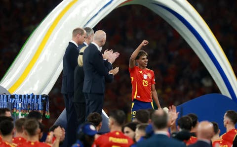 Berlín (Alemania).- Lamine Yamal, jugador de la selección española y campeón de la Eurocopa este domingo tras superar a Inglaterra en la final (2-1), fue galardonado por la UEFA con el premio al mejor jugador joven del torneo.